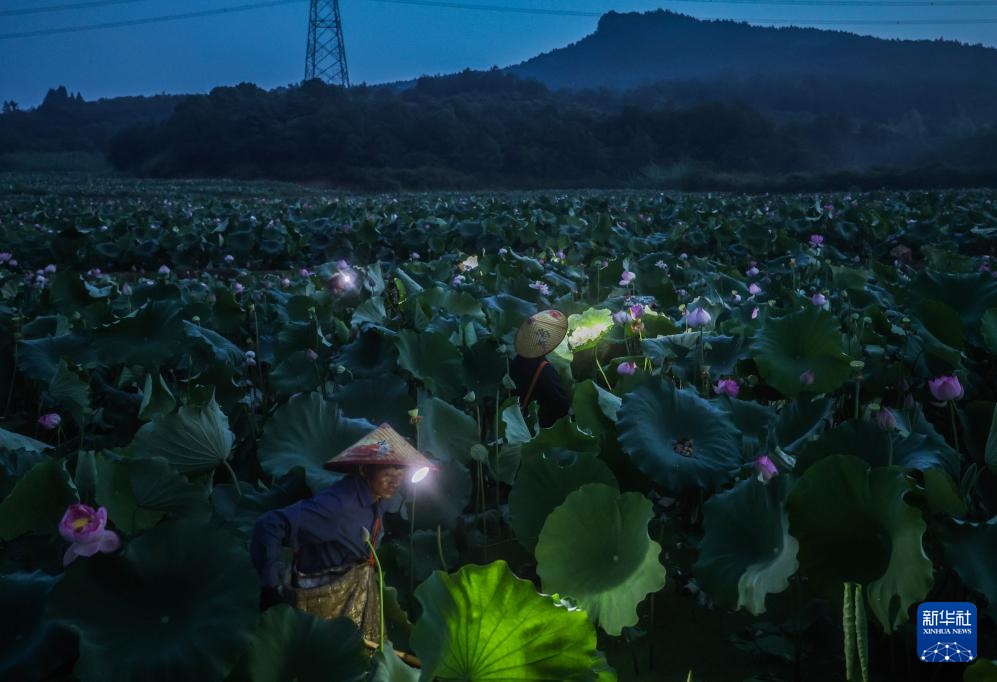 7月18日清晨,建德市大慈岩镇的果莲种植户在千亩荷塘里采摘莲蓬,经过分拣、包装后新鲜莲子当天就发往各地市场。