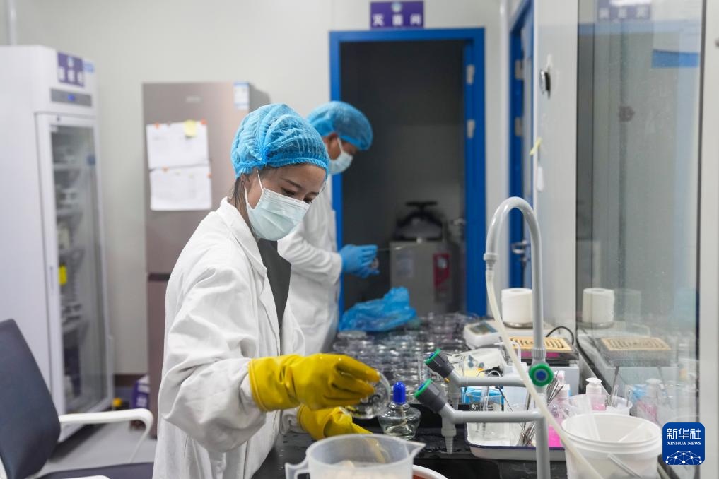 西藏聂荣嘎确生态畜牧业发展有限责任公司检验员在进行产品检验检测(7月17日摄)。