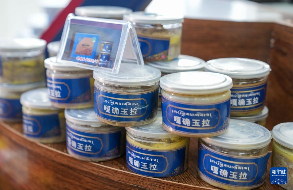 西藏聂荣嘎确生态畜牧业发展有限责任公司生产的部分乳制品(7月17日摄)。