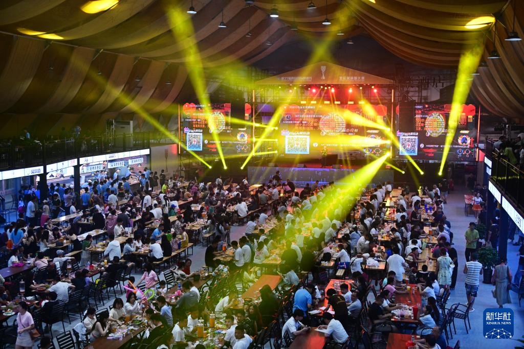 7月18日,人们在青岛西海岸新区金沙滩啤酒城内参加第35届青岛国际啤酒节。