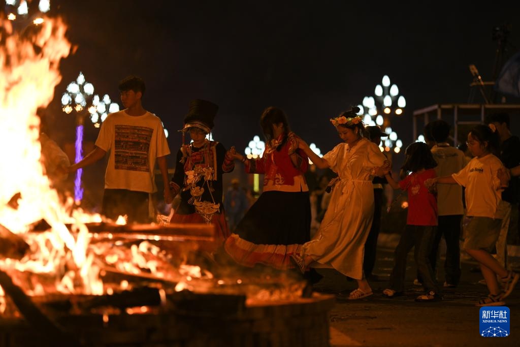 当晚,四川凉山彝族自治州西昌市举行2025年凉山彝族火把节开幕式和火把狂欢夜活动。火把节是彝族重要的传统节日之一,人们点燃火把,围着火堆跳起达体舞,在火光中释放欢乐。