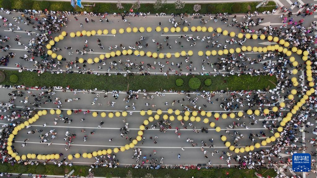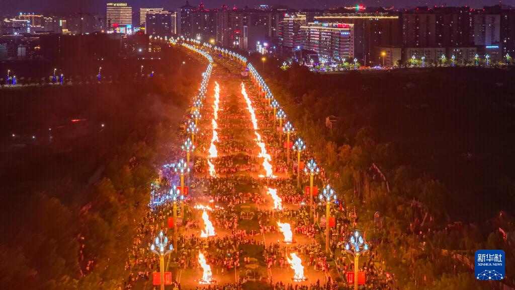 7月18日,在西昌市航天大道,88个火堆同时点燃(无人机照片)。