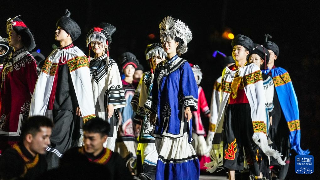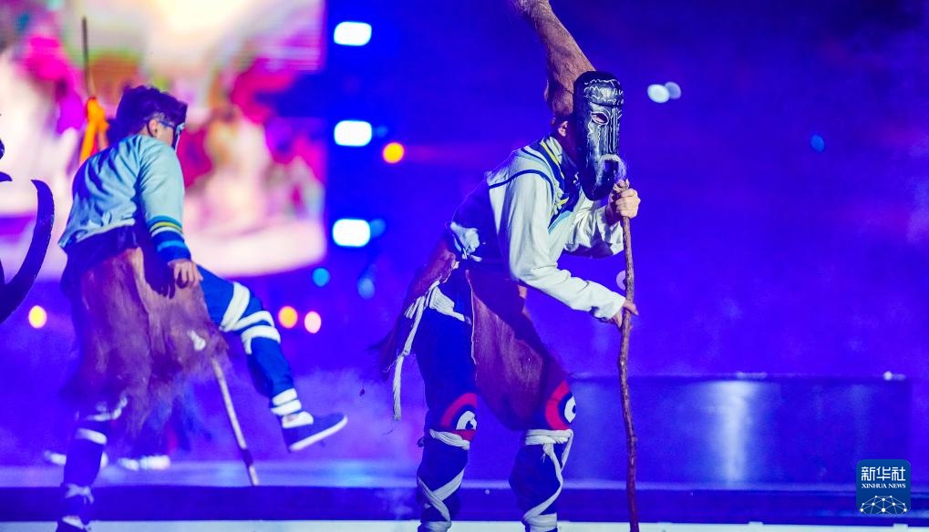 演员在六盘水市水城区海坪彝族火把节活动上表演(7月18日摄)。