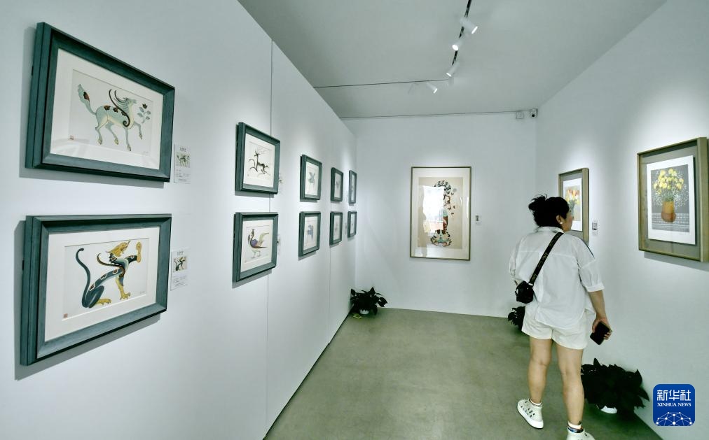 游人在798艺术园区内的常沙娜艺术馆参观(7月16日摄)。