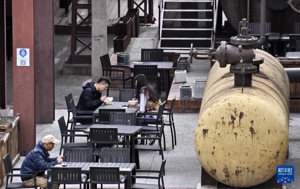 人们在798艺术园区内的工业特色餐厅用餐(2023年4月12日摄)。