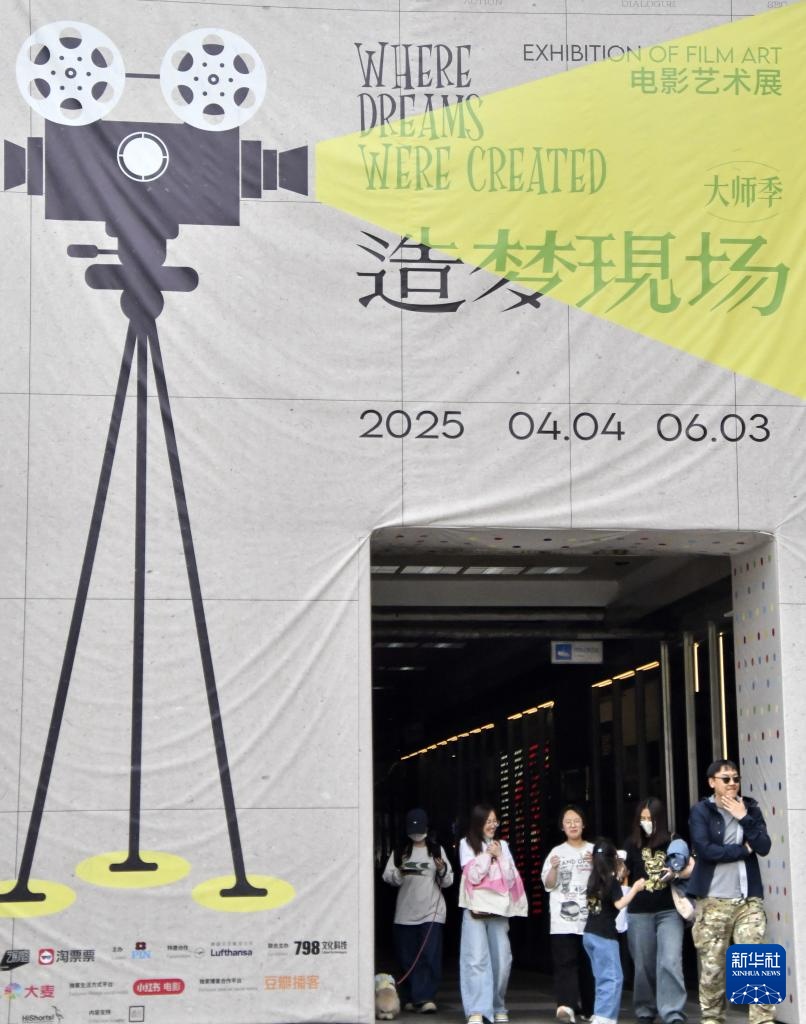 游人在798艺术园区内的动力广场参观(2023年4月12日摄)。
