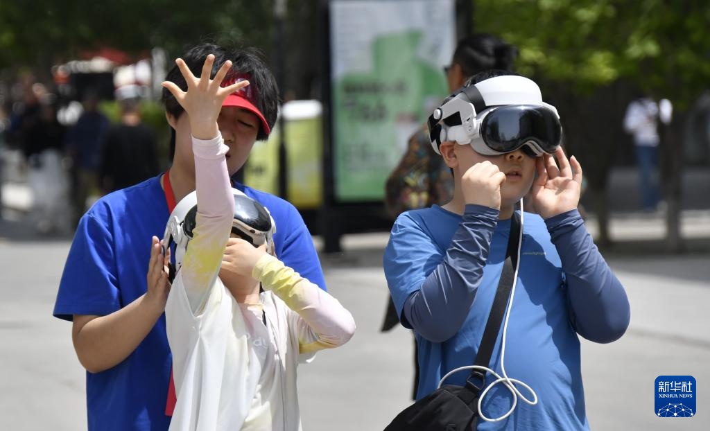 游人利用AR设备参观798艺术园区(5月4日摄)。