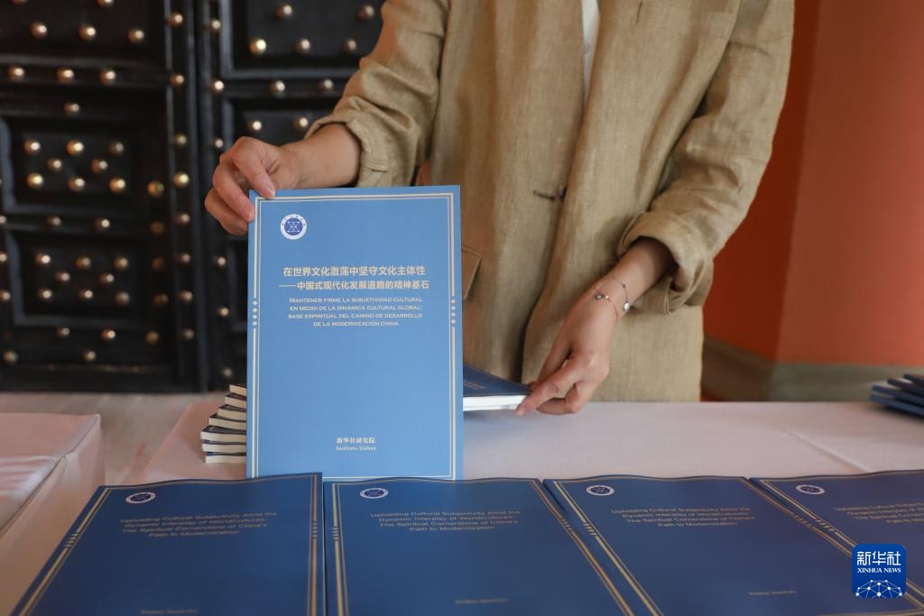 这是7月18日在墨西哥首都墨西哥城举办的“红厅论坛·中墨文明交流互鉴对话会”上拍摄的《在世界文化激荡中坚守文化主体性——中国式现代化发展道路的精神基石》智库报告。