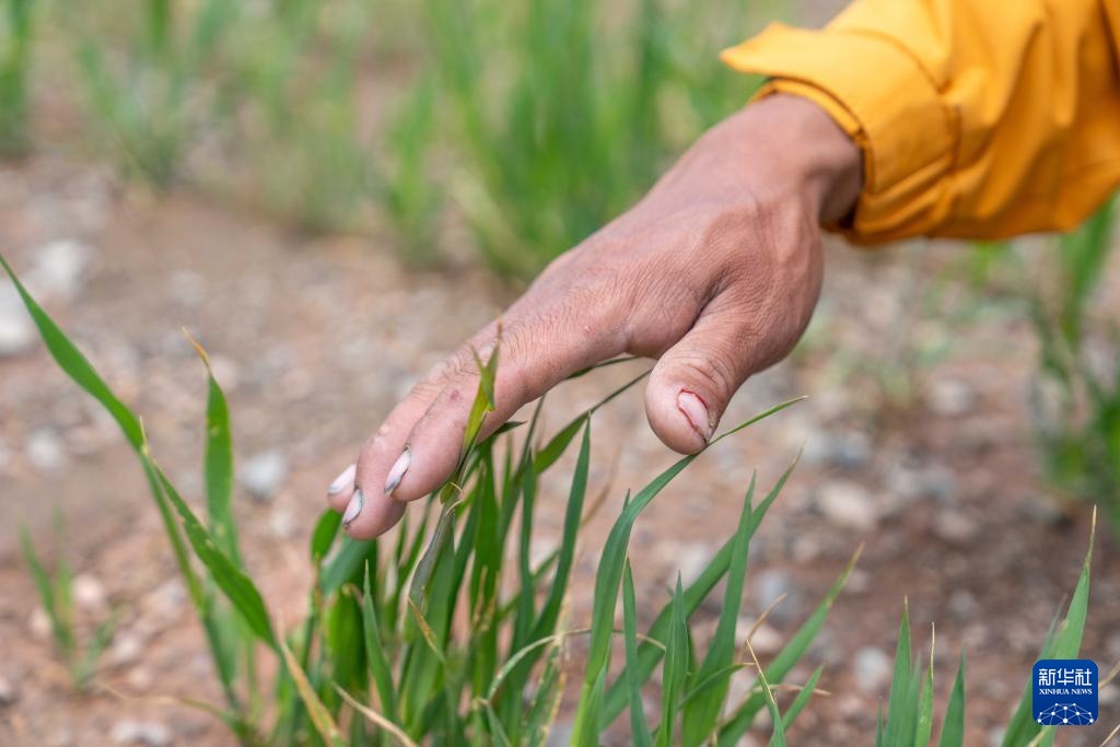 7月20日,西藏阿里地区革吉县文布当桑乡夏玛村村民达多在人工种草基地工作。