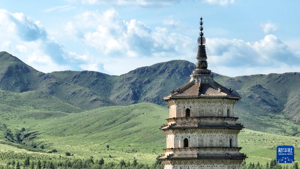 7月20日拍摄的内蒙古赤峰市巴林右旗辽庆州白塔(无人机照片)。