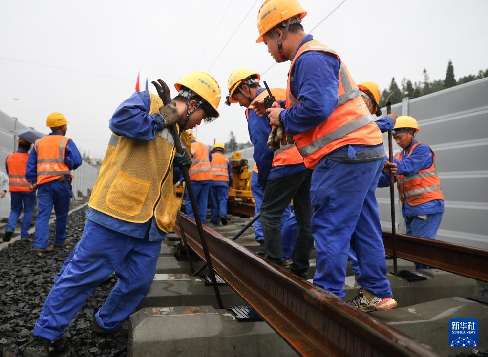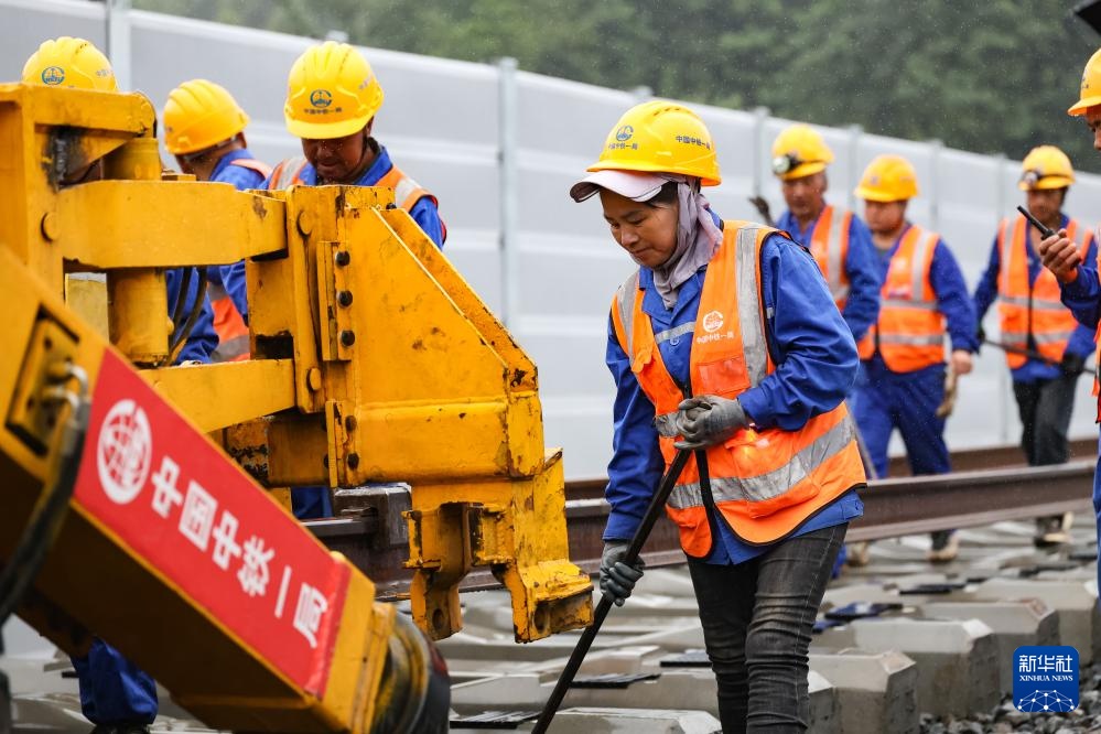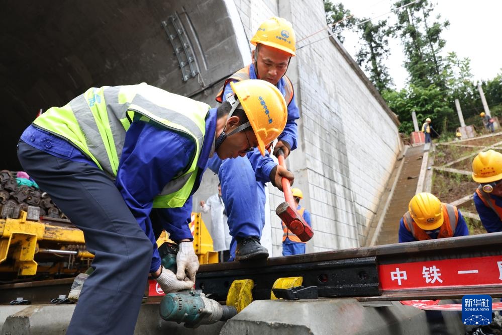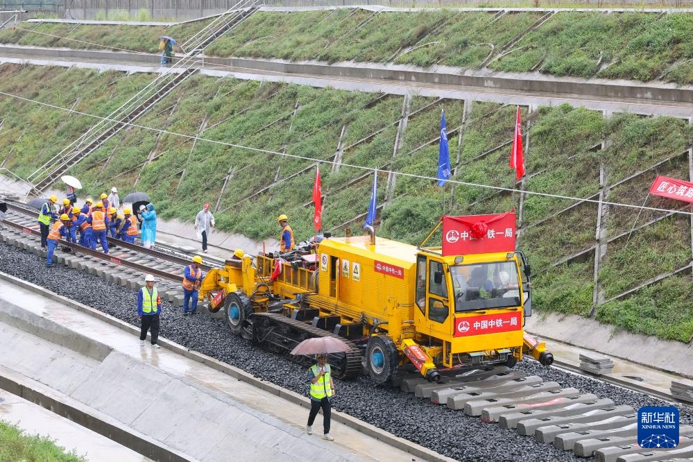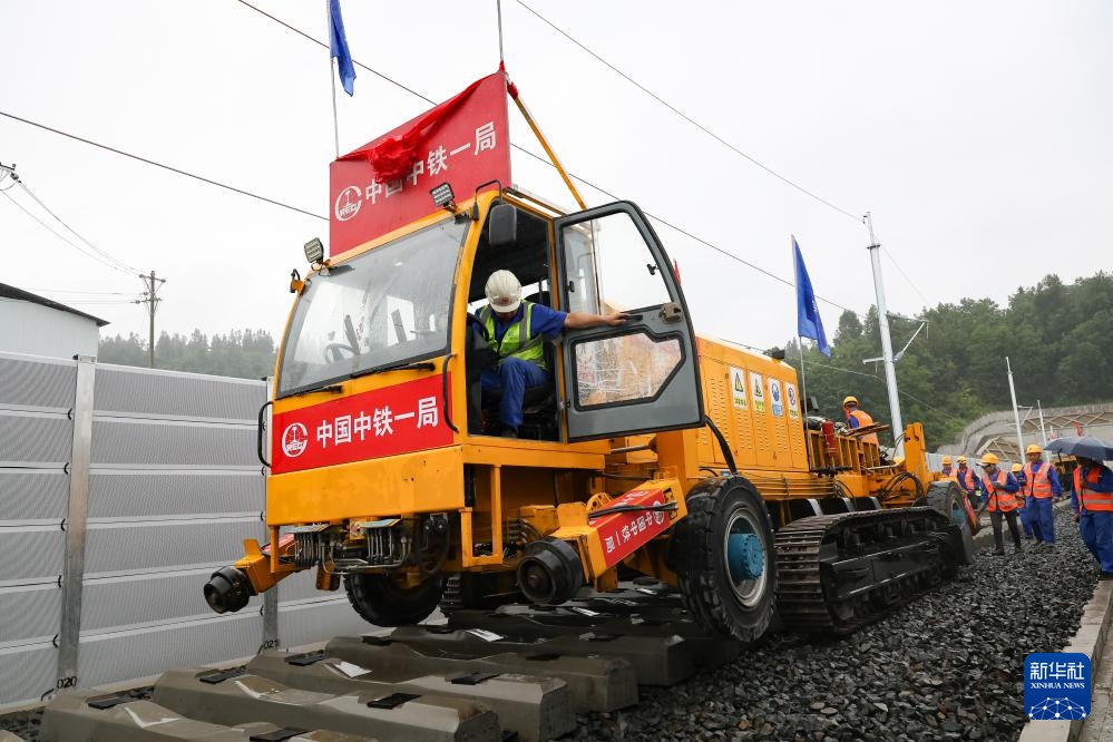 7月22日,中铁一局建设者在接轨处进行铺轨施工。