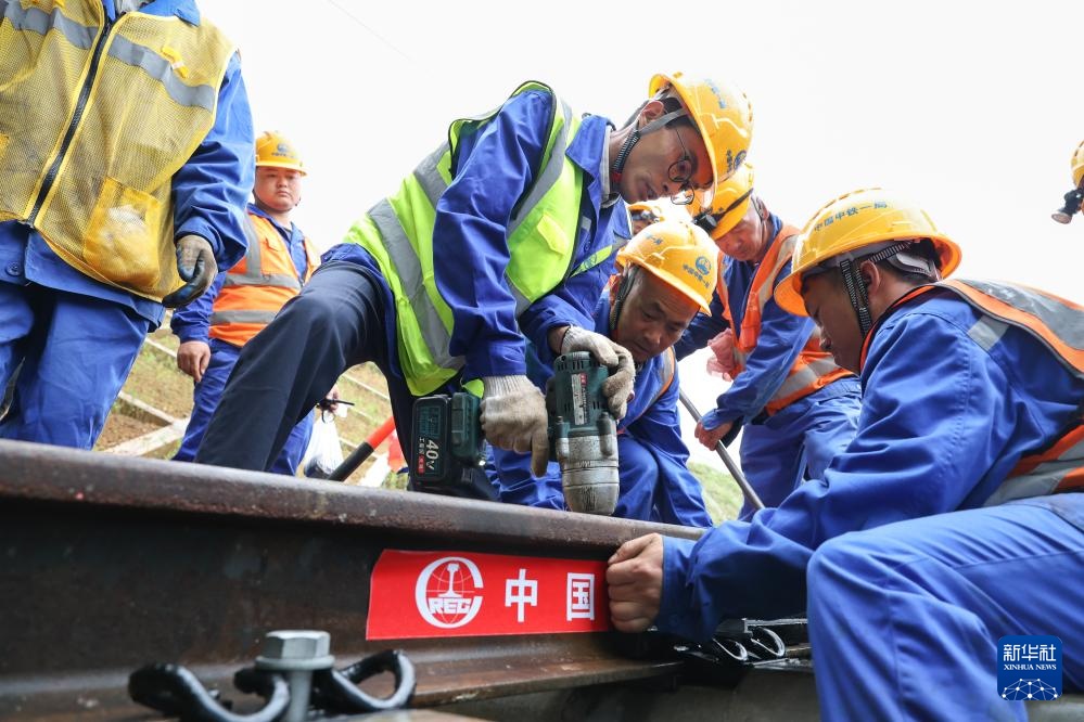当日,随着最后一根500米长钢轨平稳铺设在位于贵州省盘州市的茶厅左线隧道路基上,盘兴高铁全线铺轨贯通。