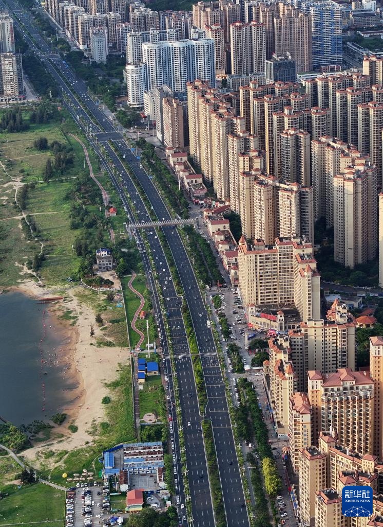 防城港市北部湾大道(7月6日摄,无人机照片)。