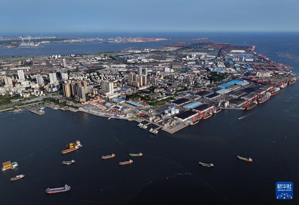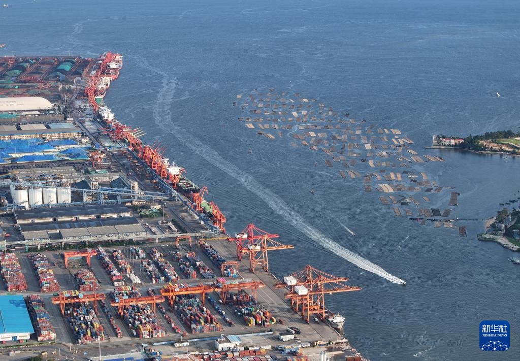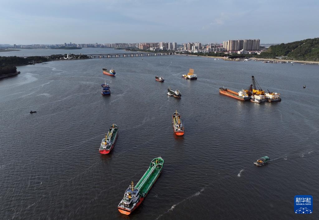 轮船在防城港码头海域行驶(7月6日摄,无人机照片)。