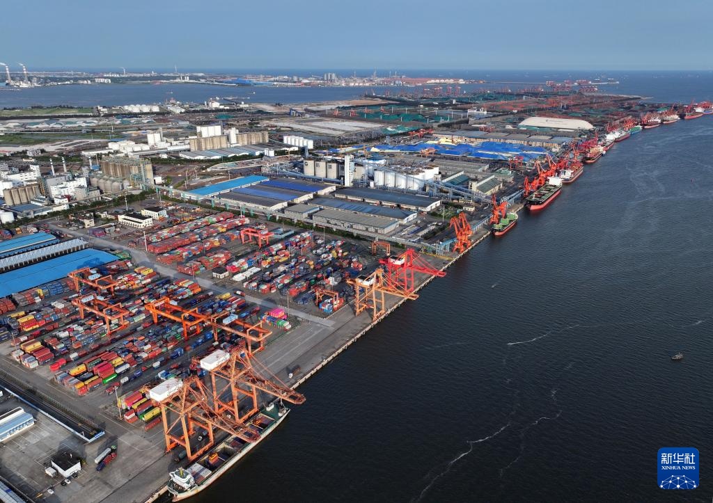 繁忙的防城港码头(7月6日摄,无人机照片)。