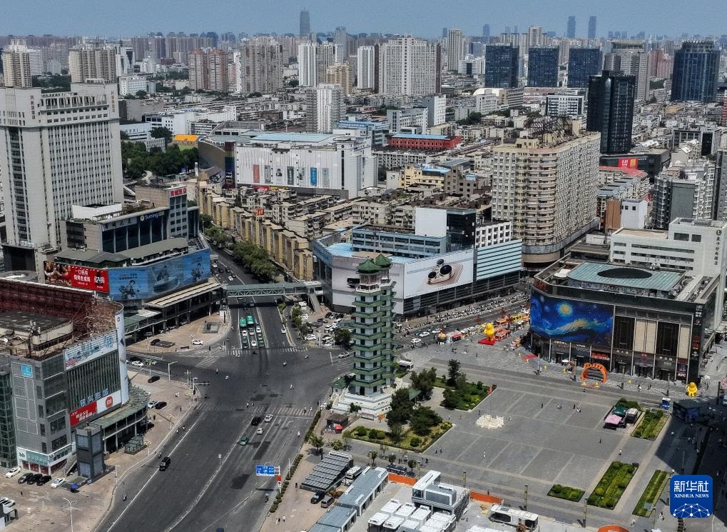 这是7月17日拍摄的郑州市二七广场(无人机照片)。