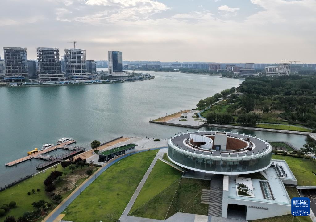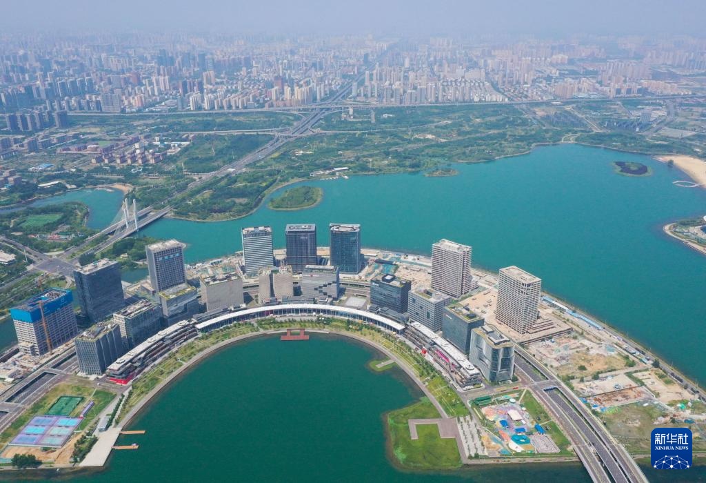 这是7月15日拍摄的郑州龙湖金融岛(无人机照片)。
