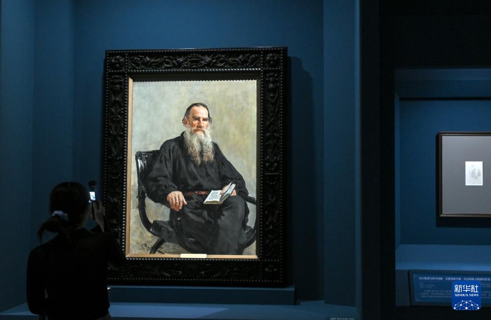 7月22日,记者拍摄列宾画作《列夫·托尔斯泰肖像》。