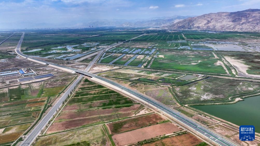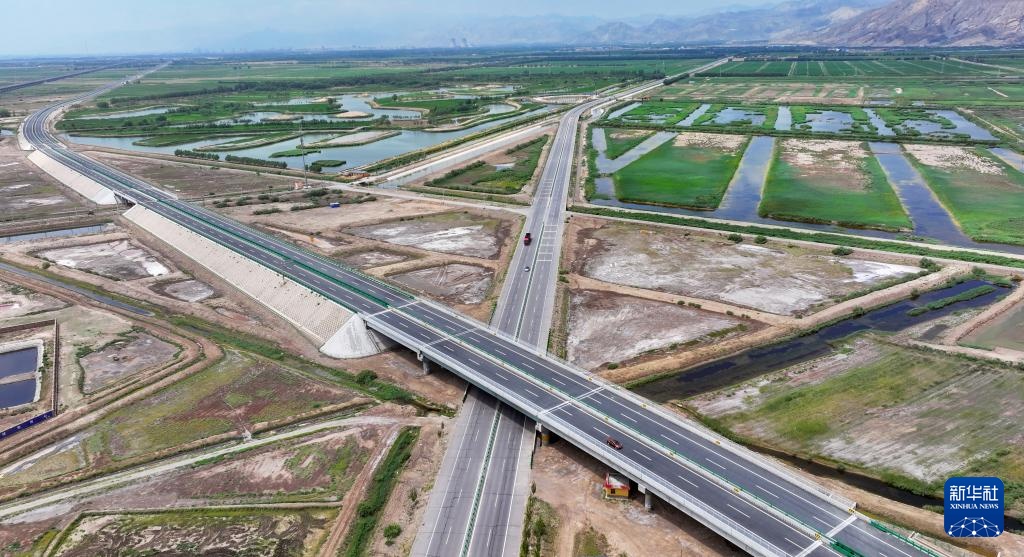 这是建成通车的乌玛高速公路惠农至石嘴山段(7月22日摄,无人机照片)。