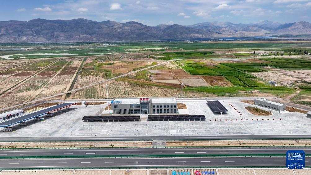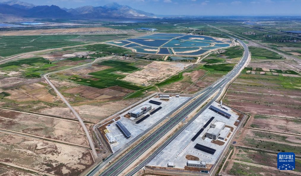 这是乌玛高速公路惠农至石嘴山段高庙湖服务区(7月22日摄,无人机照片)。