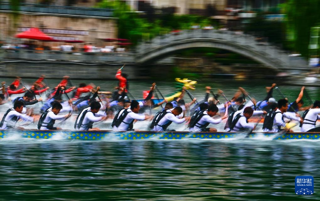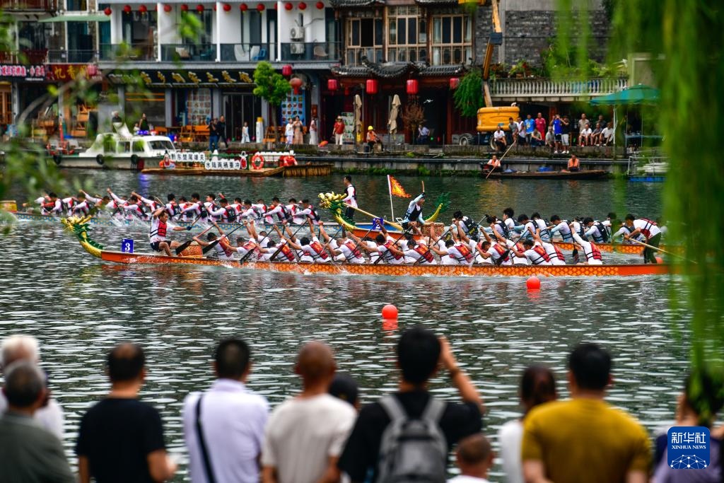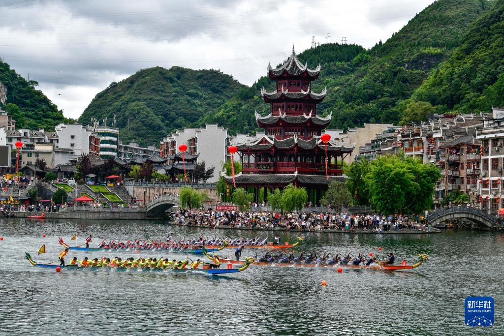当日,2025年民体杯全国龙舟比赛在贵州省黔东南苗族侗族自治州镇远古城开幕。来自全国各地的10支龙舟队伍同场竞技,在镇远古城的㵲阳河上参加为期两天的水上竞速。赛事期间同时举办非遗展演、“龙神嫁妹”主题巡演等丰富多彩的活动。