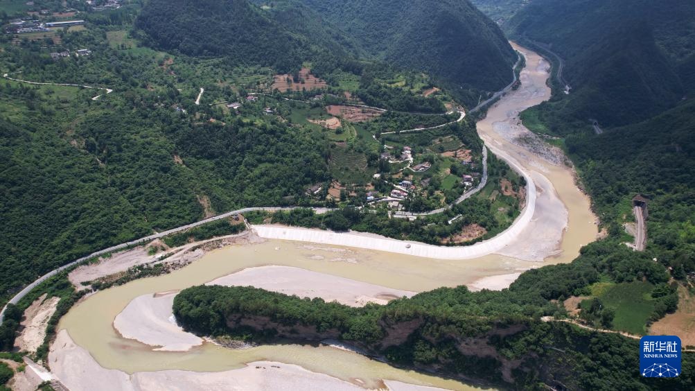 7月15日拍摄的嘉陵江两岸的宝成铁路(右)和328省道(无人机照片)。