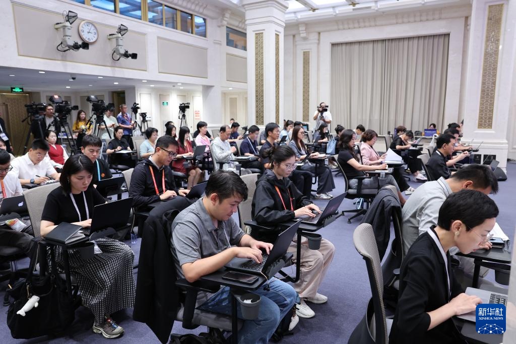 7月23日,国务院新闻办公室举行“高质量完成‘十四五’规划”系列主题新闻发布会。公安部分管日常工作的副部长亓延军介绍以高水平安全护航“十四五”规划高质量完成有关情况,并答记者问。这是记者在发布会现场工作。