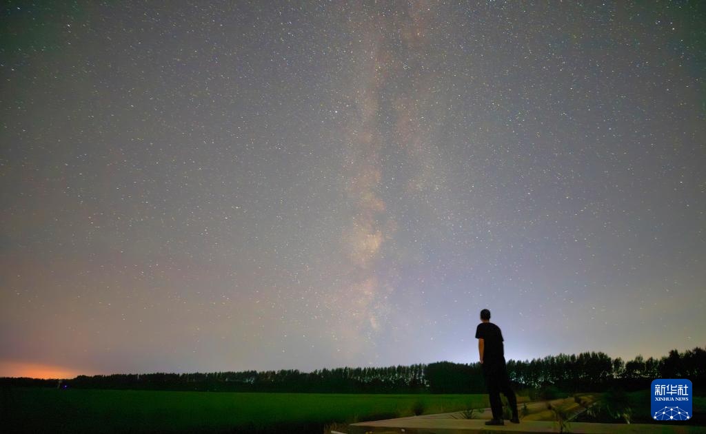 夏季是银河最佳观赏季,七八月入夜后,银河会从东北方地平线的位置向南方延伸,横跨整个夜空。当银河最亮的银心部分过上中天时,银河看起来会与地面垂直而立,银白色的“光瀑”仿佛从高空直泻而下,展现出“银河落九天”的壮丽景象。