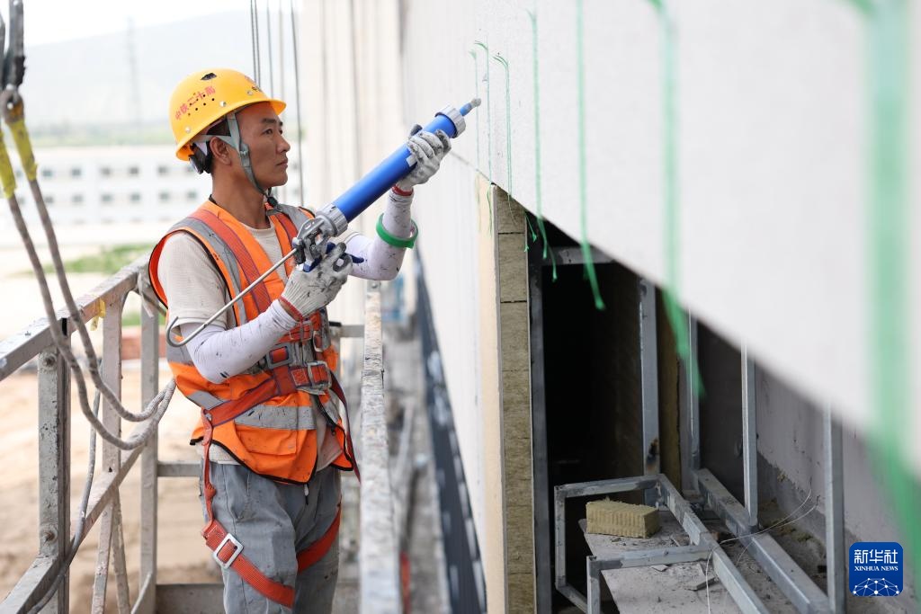 7月23日,施工人员在甘肃省武威市古浪县的中铁二十局一处项目工地上作业。