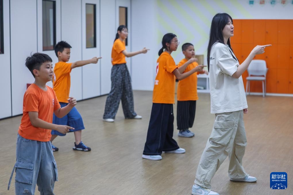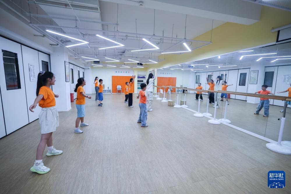 7月23日,孩子们在西山社区党群服务中心的暑期爱心教室上舞蹈课。