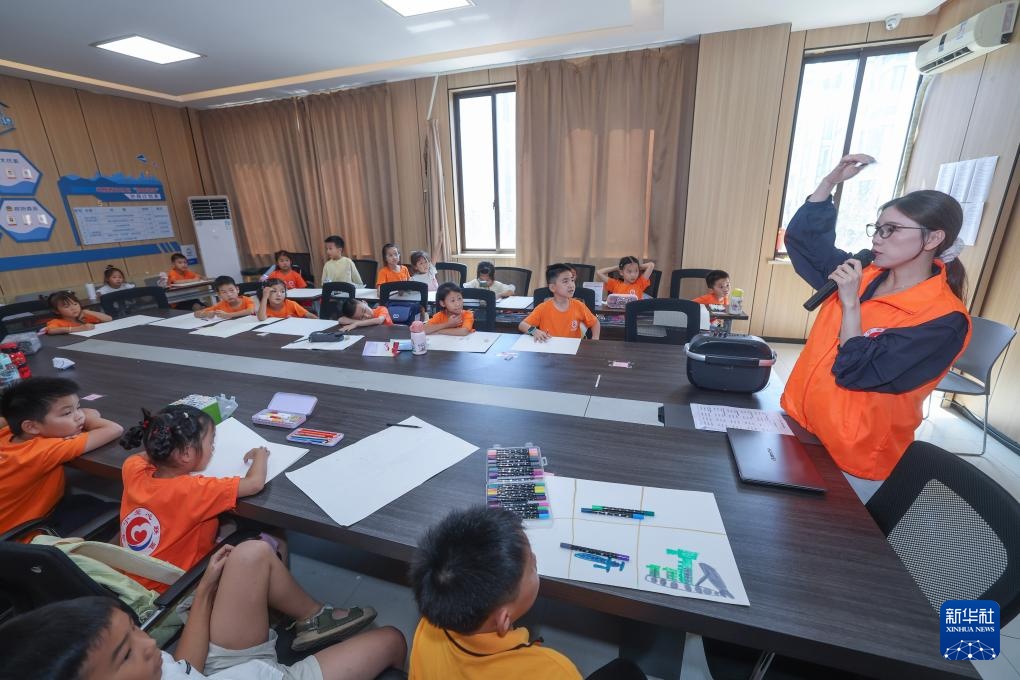 7月23日,志愿者在西山社区党群服务中心的暑期爱心教室给低龄段的孩子们上课。