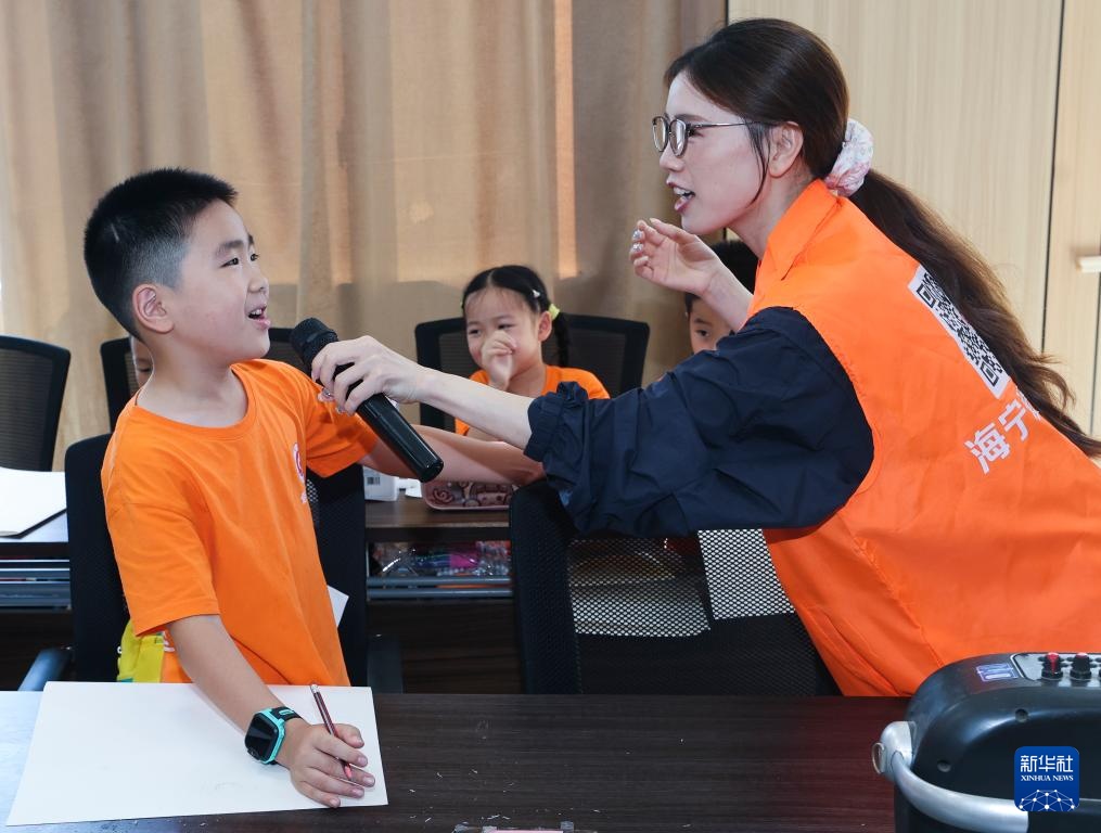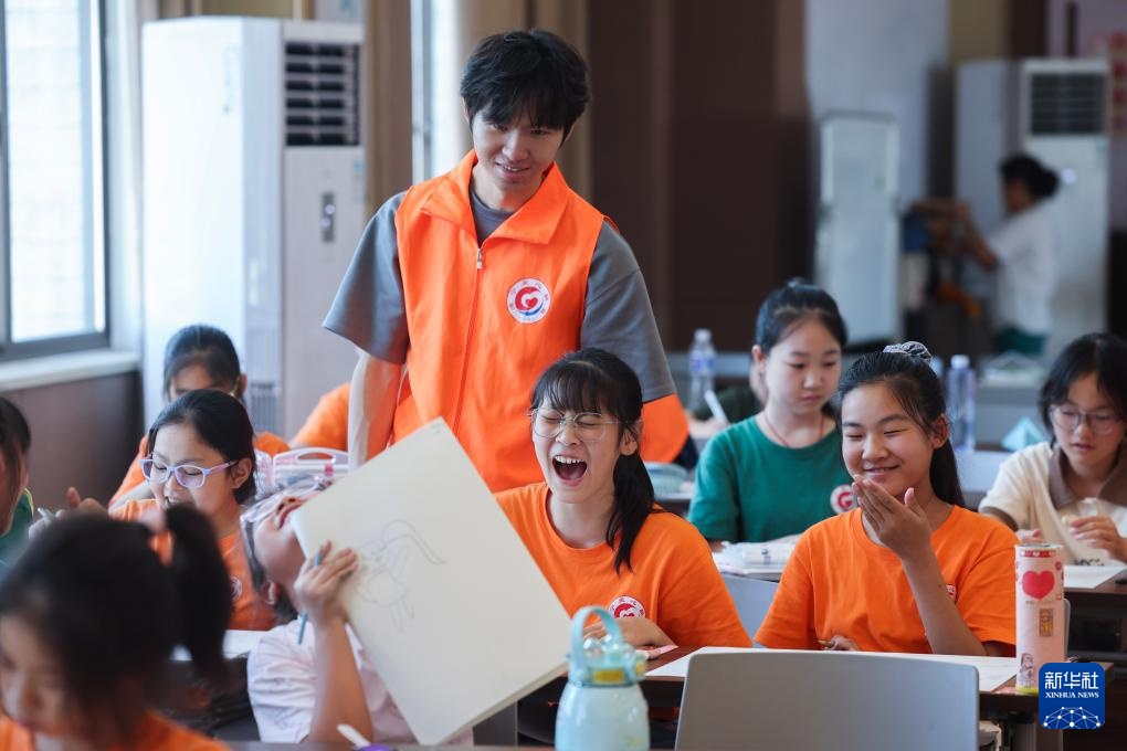 7月23日,在西山社区党群服务中心的暑期爱心教室,孩子们在志愿者辅导下画画。