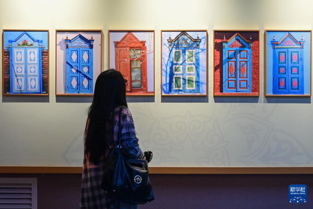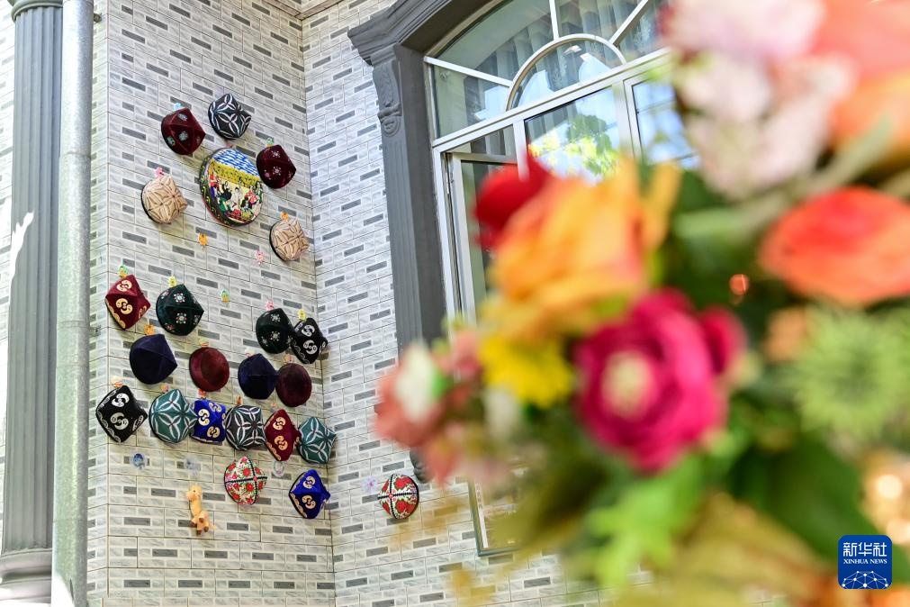 游客在新疆伊犁哈萨克自治州伊宁市伊犁老城喀赞其文化旅游区石榴花展览馆参观(7月23日摄)。