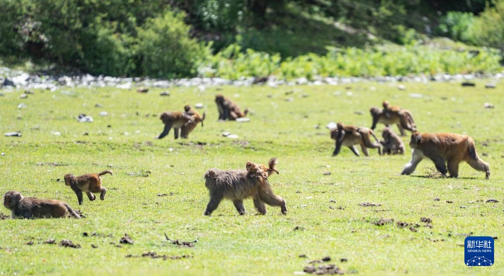 7月,西藏林芝市工布江达县仲莎乡林则村绿意盎然。这里是远近闻名的国家二级重点保护野生动物藏猕猴的栖息地。藏猕猴或穿梭于树丛间,或栖息在山坡上,身影随处可见。