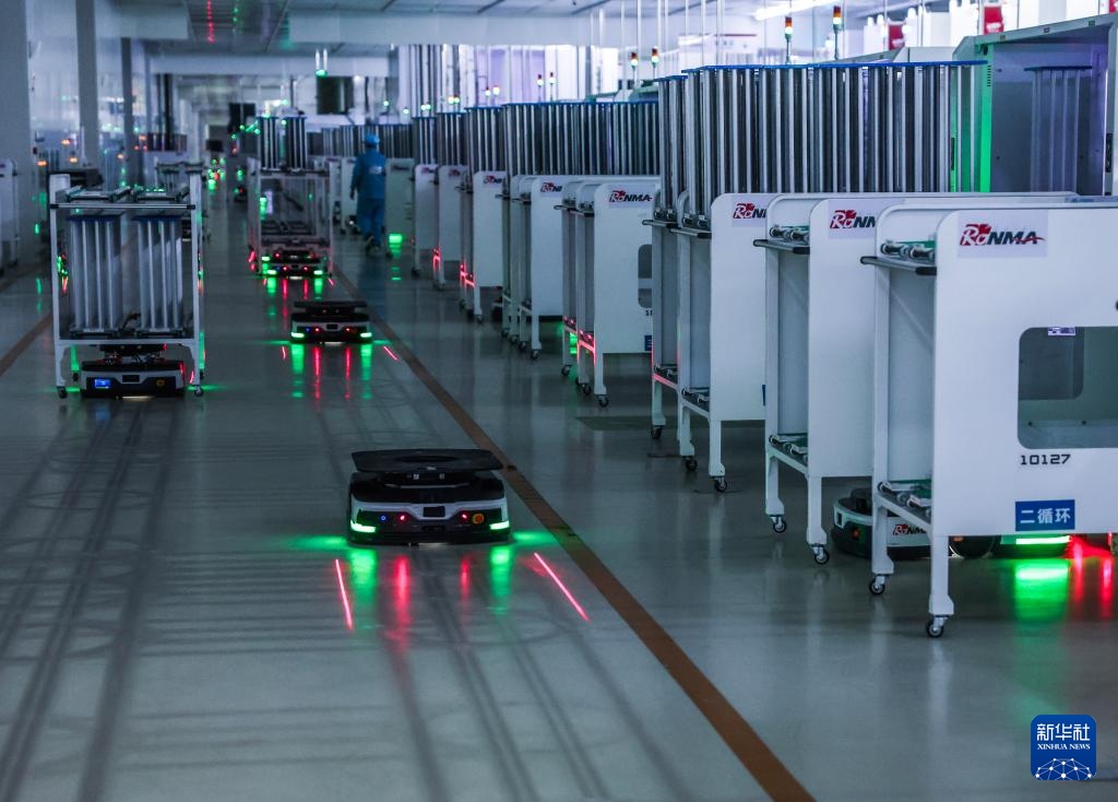 7月24日,在位于金华市金义新区的润马光能科技(金华)有限公司5G车间,智能机器人在自动运行。