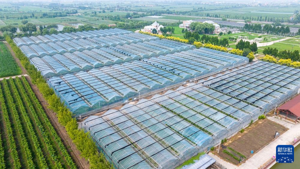 这是7月24日拍摄的位于天津市滨海新区的茶淀葡萄科技园一景(无人机照片)。