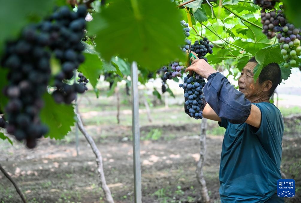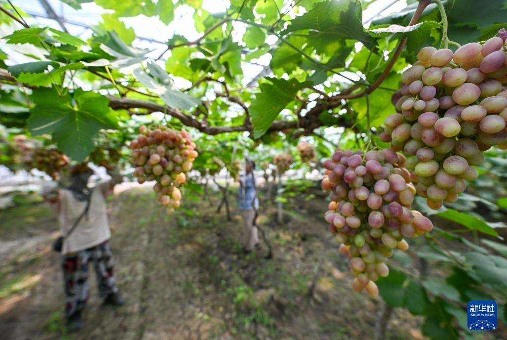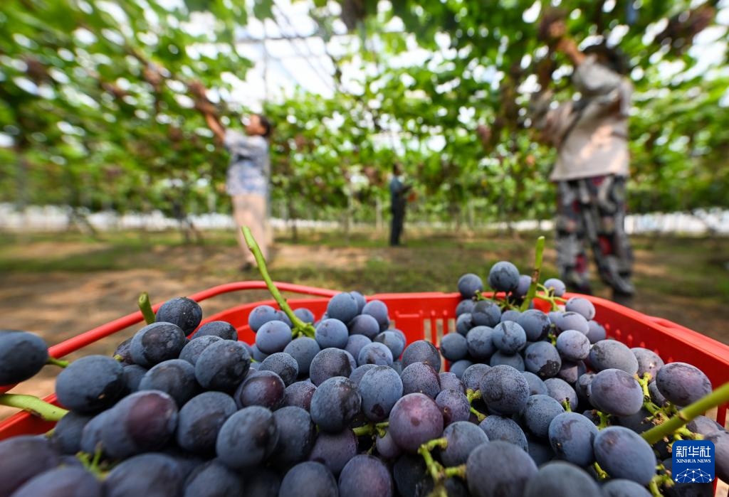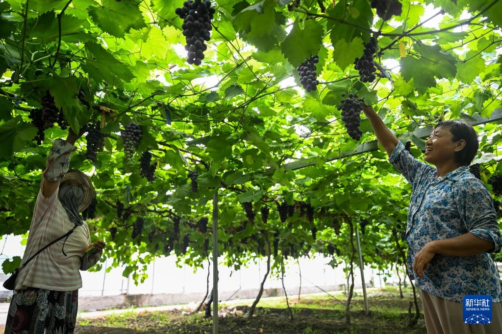 近日,位于天津市滨海新区茶淀街道的茶淀葡萄科技园迎来采摘季,果农们忙着收获葡萄供应市场。据了解,茶淀玫瑰香葡萄是国家地理标志保护产品,目前全街道种植有2.7万亩。近年来,茶淀街道加快推广葡萄标准化种植,建设茶淀玫瑰香葡萄地理标志保护产品示范区,不断提高葡萄产量和品质,助力果农增收。