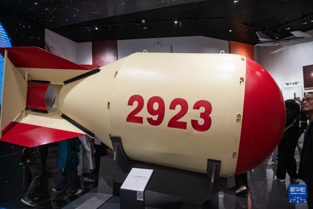 7月24日在青海省海北藏族自治州海晏县的青海原子城纪念馆拍摄的中国第一颗机载原子弹模型。
