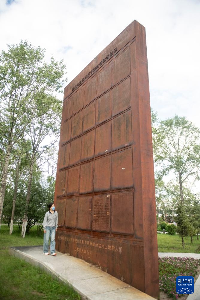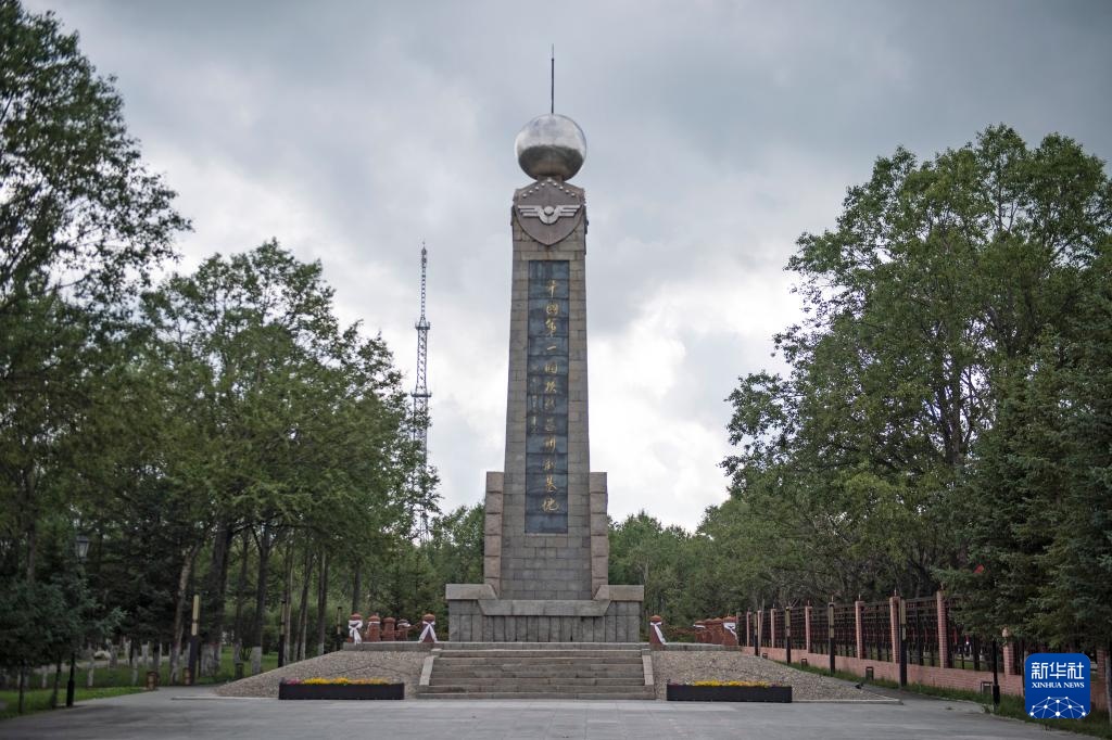 7月24日在青海省海北藏族自治州海晏县拍摄的“中国第一个核武器研制基地”纪念碑。
