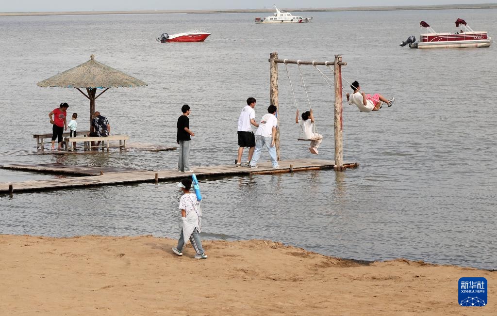 7月23日,游客在内蒙古自治区赤峰市克什克腾旗达里诺尔湖畔游玩。