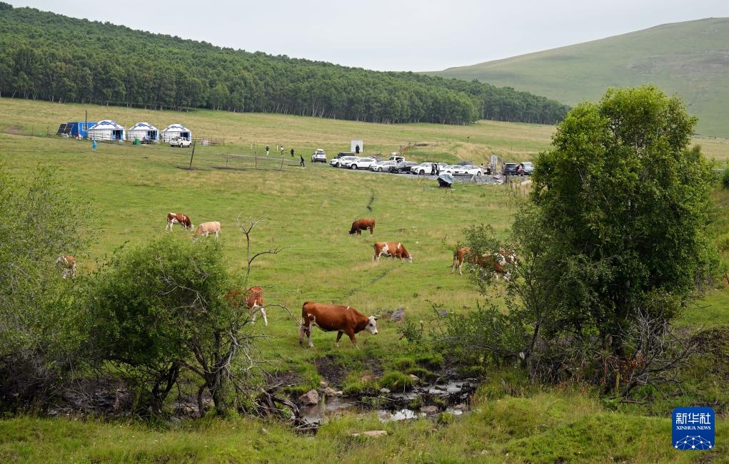水草丰美的内蒙古大草原正值暑期旅游旺季,吸引各地游客纷至沓来,领略美丽风光。