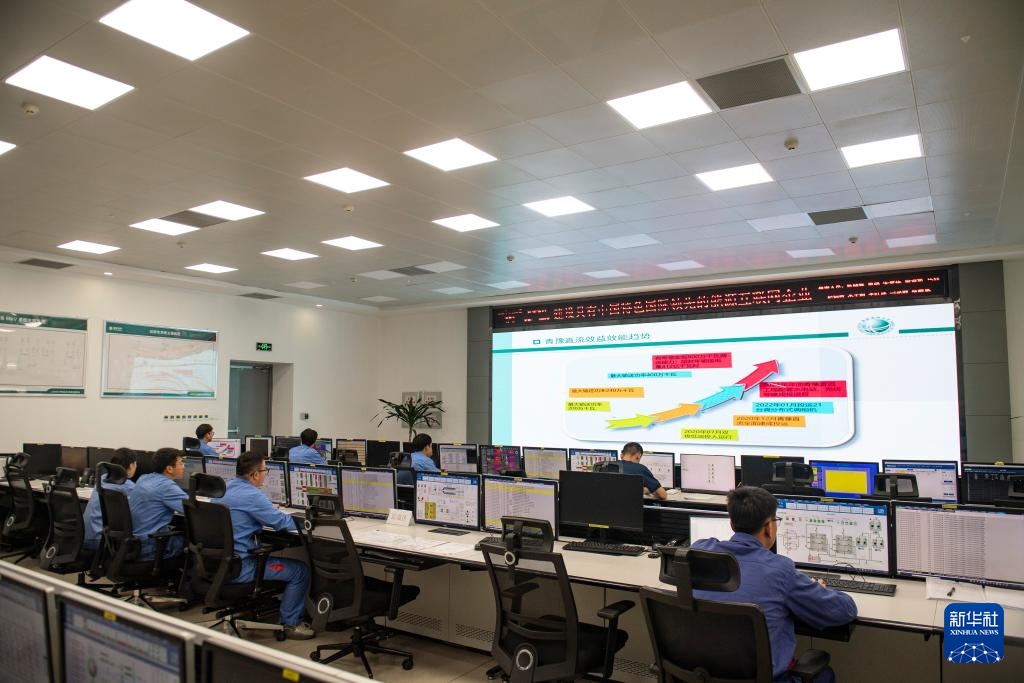 7月25日,工作人员在青海省共和县±800千伏特高压青南换流站的中控室作业。