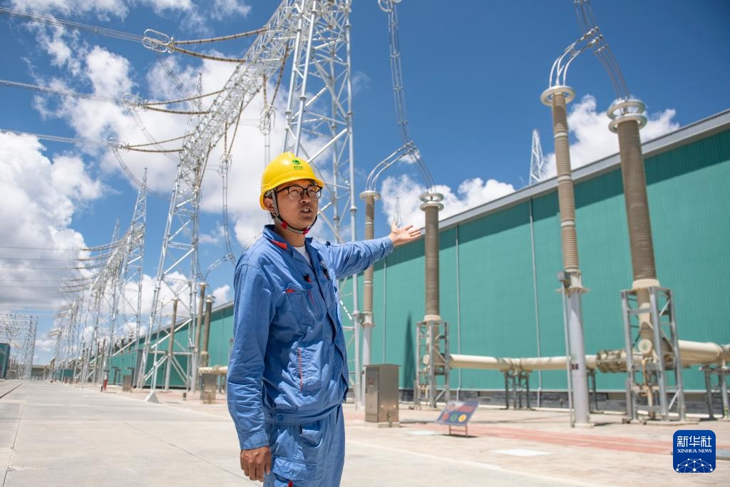 7月25日,值班员李红烽在青海省共和县±800千伏特高压青南换流站介绍相关电力设备。