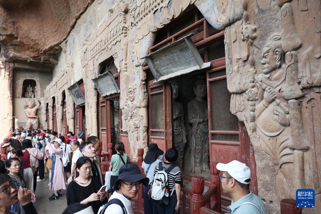 游客在麦积山石窟参观(7月16日摄)。