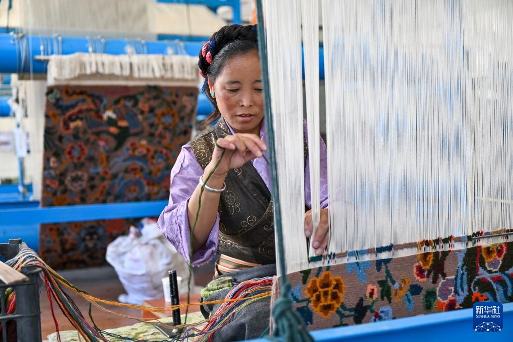 近年来,江孜藏毯不仅严守织造技艺中代代相传的“魂”——穿杆式连环八字扣,又在数字制图、生产工艺提升方面创新,使图案产生光影流动的3D效果。当地的藏毯公司通过建立合作社、开办技能培训班等方式扩大灵活就业规模,让更多人在家门口织藏毯增收,助推乡村振兴。