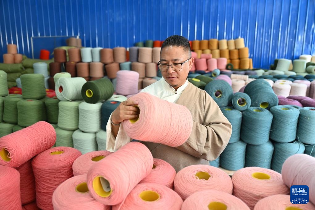 7月18日,江孜藏毯文化发展有限责任公司创始人旦增称来在仓库里检查染色后的纱线。