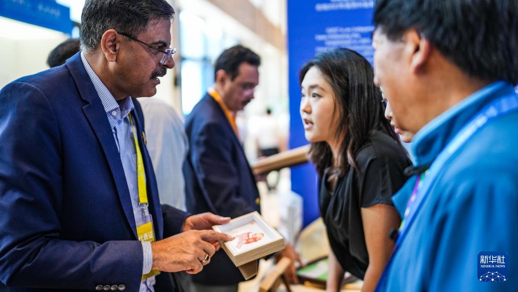 7月26日,参会代表参观非遗手工作品。