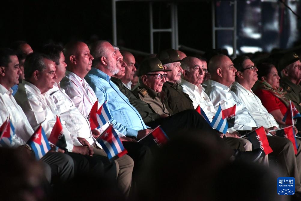 7月26日,在古巴谢戈德阿维拉市,古巴党政领导人出席“7·26国家起义日”庆典活动。