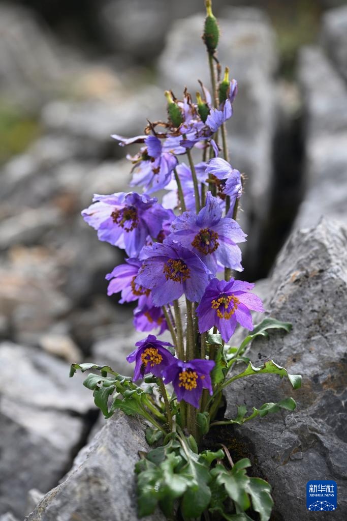 7月23日在云南省迪庆藏族自治州香格里拉市石卡雪山景区流石滩拍摄的拟秀丽绿绒蒿。