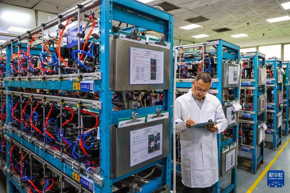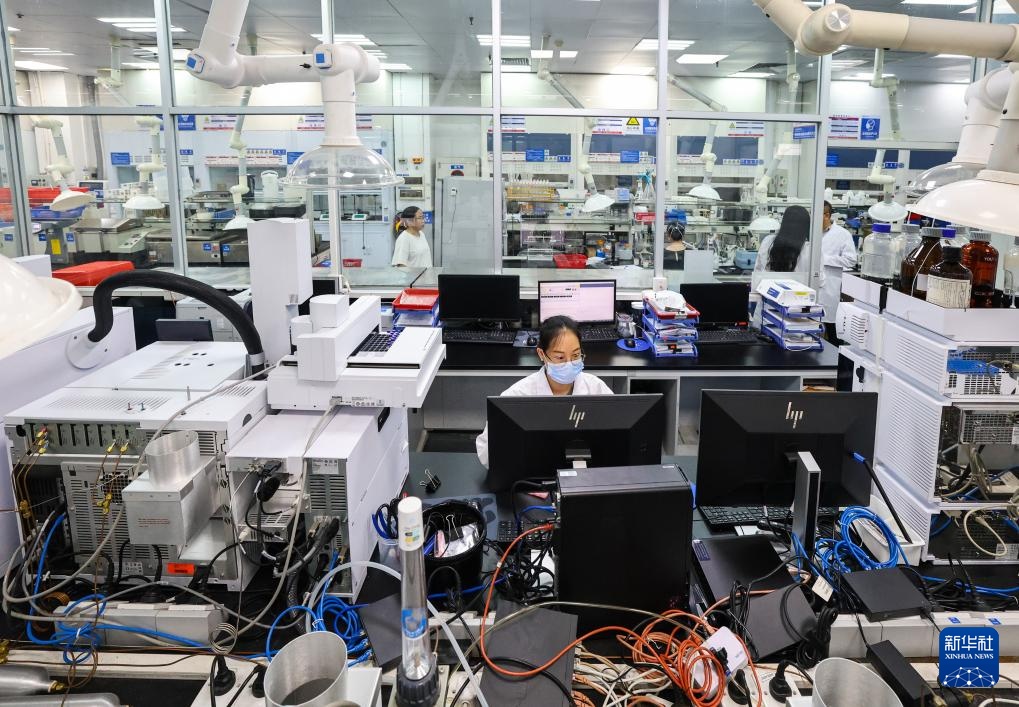 技术人员在新宝股份认证测试中心进行理化测试(7月24日摄)。